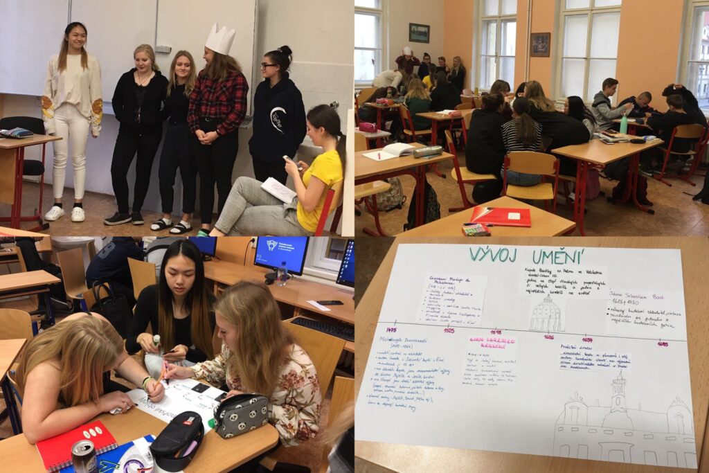 Předmět Člověk v dějinách (alias dějepis) nemusí být jenom o biflování letopočtů. Paní profesorka Bašová se třídou 1. A využívá