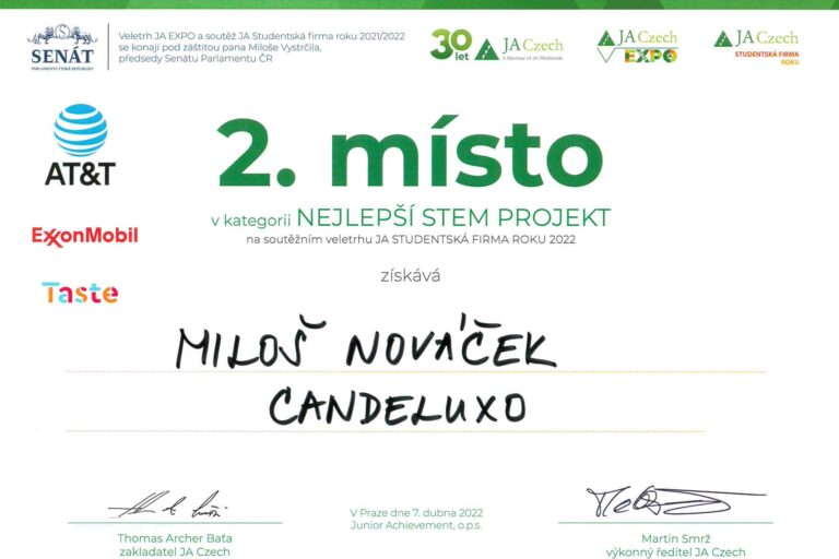 Gratulujeme našim žákům Miloši Nováčkovi a Michalu Řezáčovi, kteří získali cenné kovy na veletrhu JA Expo dne 7. dubna 2022, a to v kategorii STEM ...